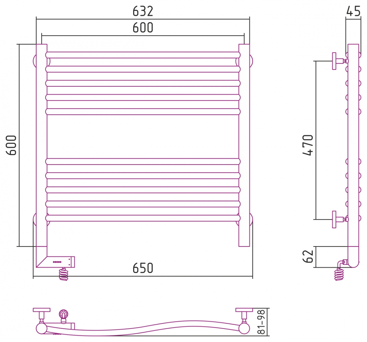 Внешние габариты (высота х ширина х глубина)(мм) : 600x650x81-98