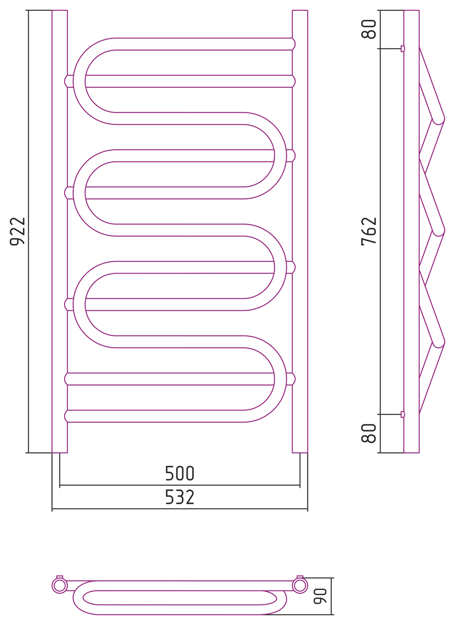 Размер полотенцесушителя:1000x500