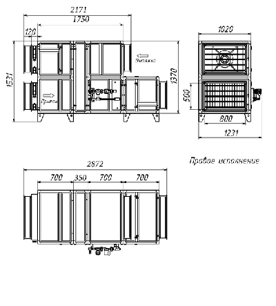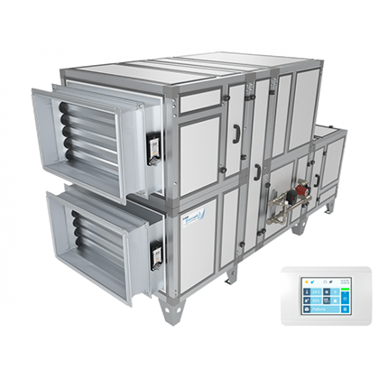 - Приточно-вытяжная установка напольного типа с противоточным пластинчатым рекуператором, системой защиты от замерзания, эффективный рабочий температурный диапазон до -35°С.