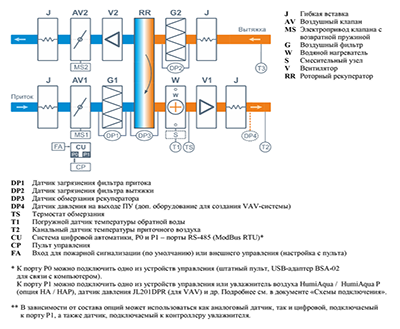 - Управление увлажнителем воздуха с пульта вентустановки.