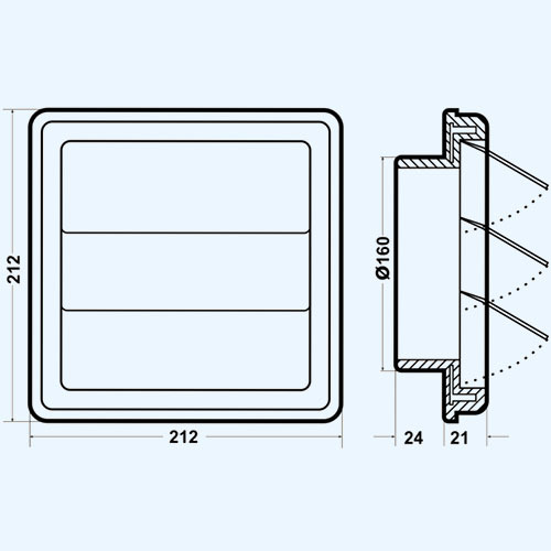Решетка вытяжная с гравитационными жалюзи ERA 1919К15.16Ф 190х190, d150/160 в интернет-магазине «ВЕНТФОМ». Заказать с доставкой! Тел.: +7 (925) 201-33-89.
